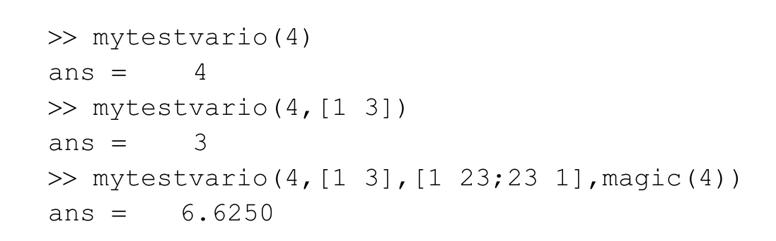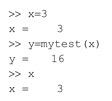 因此,函数M文件具有独立的内部变量空间。在执行函数M文件时,要指定输入参数的实际取值,而且一般要指定接收输出结果的工作空间变量。