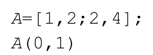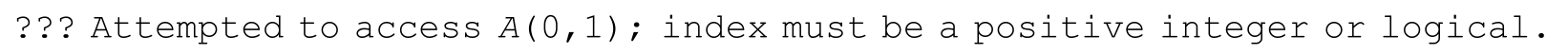 分析:如果改为A(1,1),则输出为1,表示访问A的第1行第1列的元素。同类的常见错误还有:在引用矩阵元素的时候,索引值超出矩阵应有的范围。