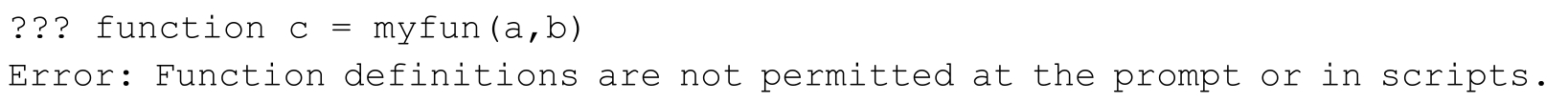 分析:在命令窗口写function c=myfun(a,b),此错误就会出现,因为函数只能定义在M文件中。关于脚本文件和M文件的区别请查阅MATLAB基础书,简言之: