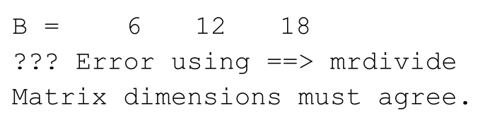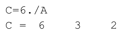 分析:其实,写为“B=6.*A”进行运算也是正确的,由于习惯的原因,这个“.”通常省略,在乘法时不会报错,但在除法时,就错了。改为以下语句就不会出错。