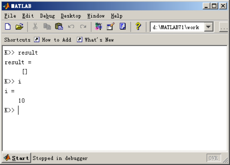 图4-9 调试模式时MATLAB命令窗口把控制权交给键盘