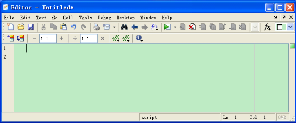 从图4-1可见,MATLAB能够根据M文件内容区别是脚本M文件还是函数M文件,并且在整个编辑过程中追踪光标位置(如图4-1底部的“Ln 1 Col 1”表示当前光标处在第一行的第一列),这对于准确快速定位当前编辑和修改位置是很方便有用的。