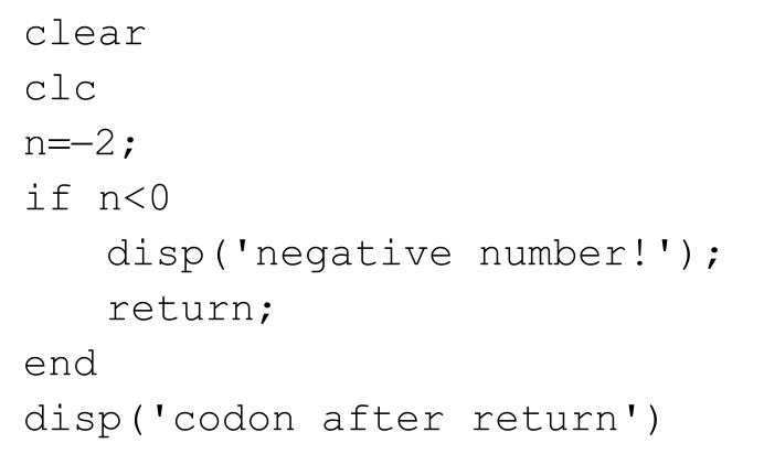 本例中当变量n取值为负数时,通过return直接退出,不执行if后的代码。其运行结果是: