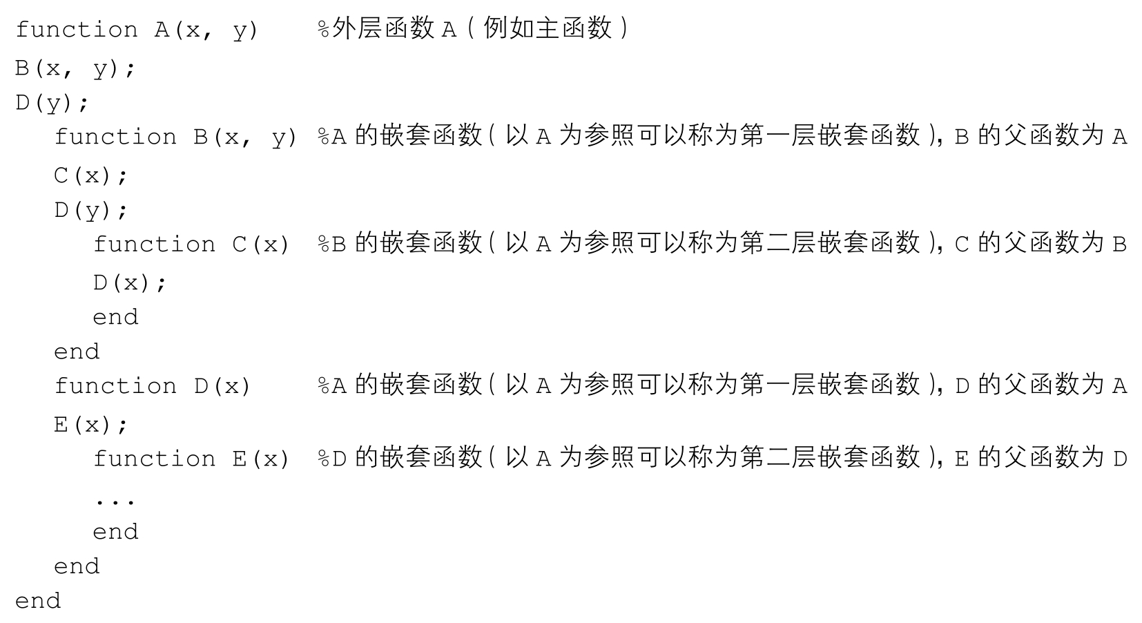 通过函数M文件,用户可以把实现一个抽象功能的MATLAB代码封装成一个函数接口,在以后的应用中重复调用。