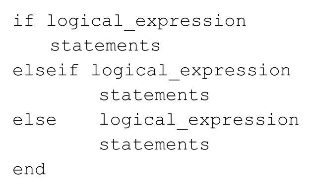 其中elseif和else语句都是可选语句。if、elseif和else构成的各项分支里面,哪一个的条件满足(逻辑表达式logical_expression的结果为真),就执行哪一个分支后面紧跟的程序语句。因此,各个分支条件满足的情况应该是互斥的和完全的,就是被选的条件在一个分支中成立,而且只能在一个分支中成立。