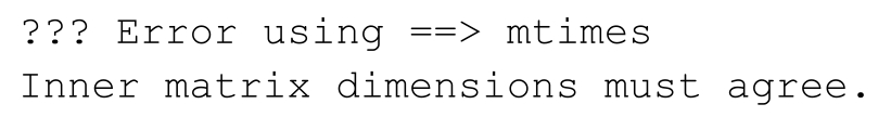 进行矩阵运算时,运算符(=+-/*等)两边的运算对象维数必须匹配。