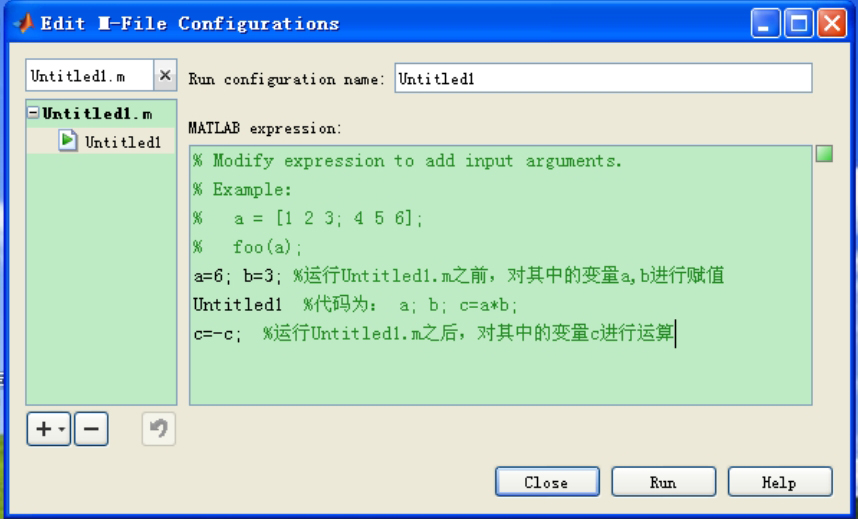 按钮,将弹出一个如图4-4所示的该M文件的运行配置文件的编辑窗口。
