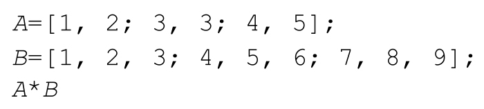 分析:A是3*2的矩阵,B是3*3的矩阵,A*B是矩阵维数不匹配,故报错。如果对A取转置,然后再相乘,则不会出错。