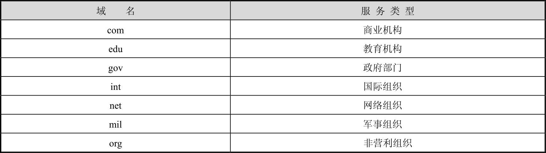 域(Domain)是代表因特网网上最顶层的逻辑分类,它是用域名最右端的标号来表示(一般称为顶级域名),这些分类主要用来区分不同的应用领域。下面是国际标准化的顶级域名表,如表2—1所示。