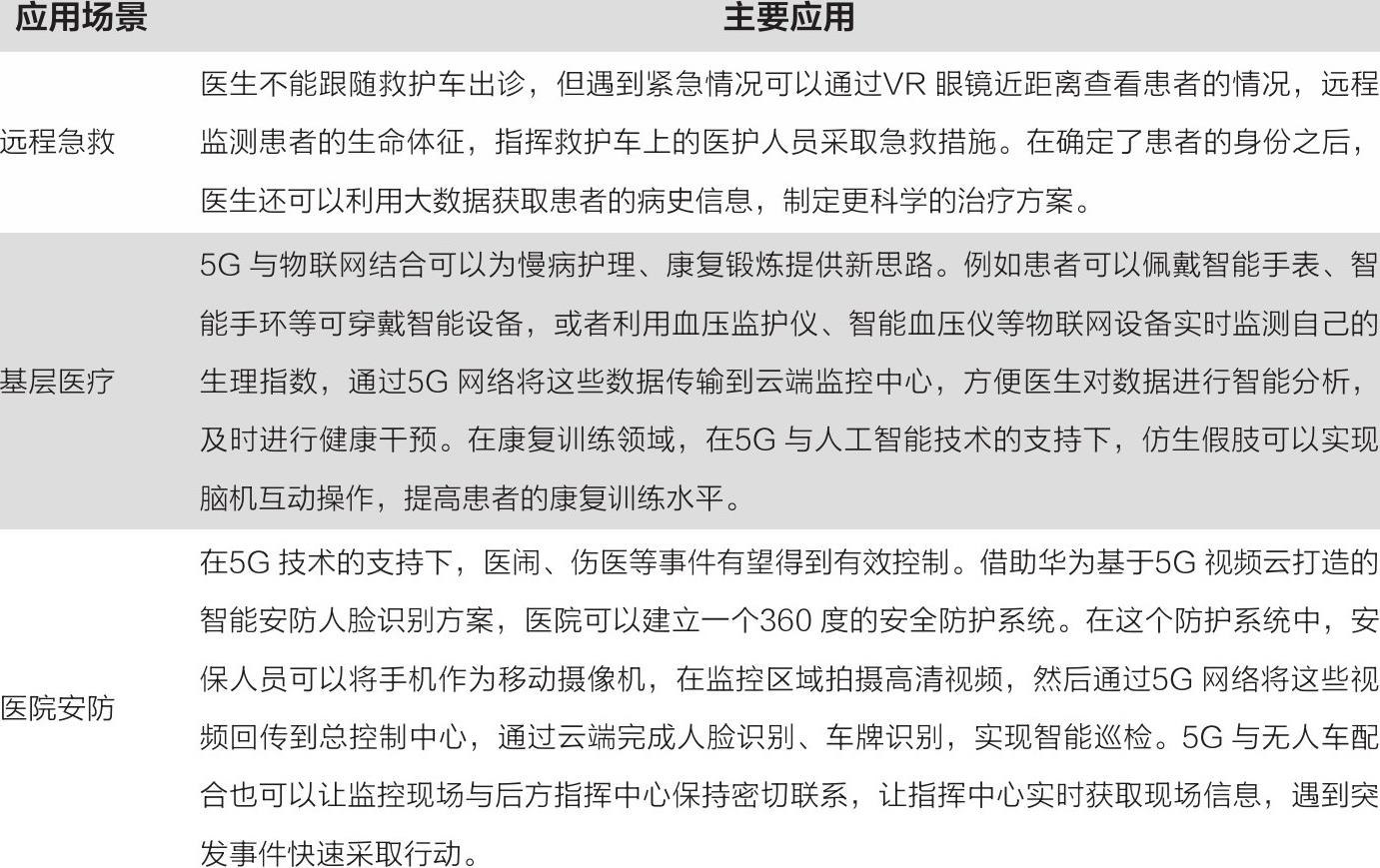 智慧医疗的应用场景主要集中在三个方面,如表1-1所示。