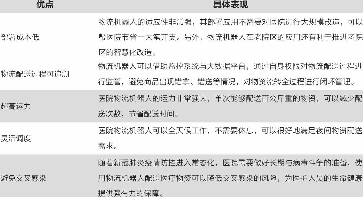 表3-4 医院智慧物流机器人的五大优点