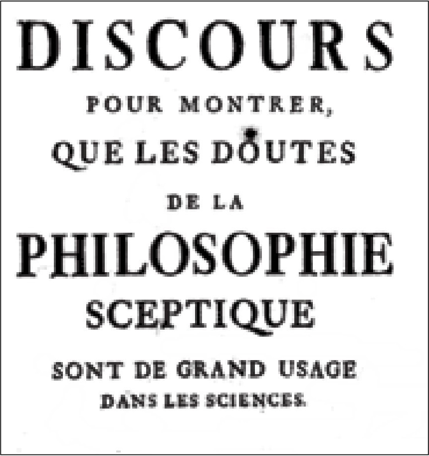 图3.19 这是一篇表明怀疑论哲学对科学具有重大意义的论述,作者为弗朗索瓦·德拉莫特·勒瓦耶(1588—1672),它显然是休特主教的参考文献。每次当我发现某个“民间思想家”找到了黑天鹅问题的解决方法时,结果很可能是他在模仿前人——这里并无恶意,但我们常常忘记应该先向前追溯。我们坚定地认为,“休谟问题”与休谟并没有多大关系,休谟将皮埃尔·培尔(他的前人)厚重的辞典传遍整个欧洲。一开始,我也以为来源是休特主教,不过随着不断向前追溯,我找到了更早的开拓者。