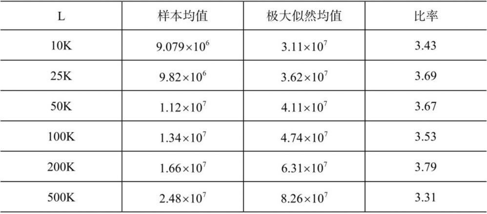 表3.4 不同样本量下的影子均值,样本均值以及它们的比值。影子均值通过极大似然估计计算得到(插入式估计),第十三章和第十六章会详细介绍