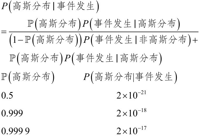 寓意: 由此可见,只要有一个极小的可能,<10 −10 的概率数据就不是高斯分布,根据事件我们基本上就可以拒绝高斯分布的假设,从而接受厚尾分布的假设。实际上,只要出现>4倍或>5倍标准差的事件,我们就可以拒绝高斯分布的假设——我们会在书中不断介绍为什么条件方差这样的补丁是不充分的,可能是彻头彻尾的欺骗。 [1]