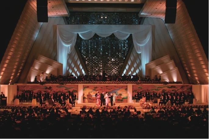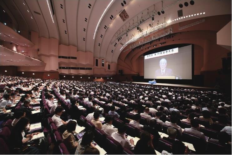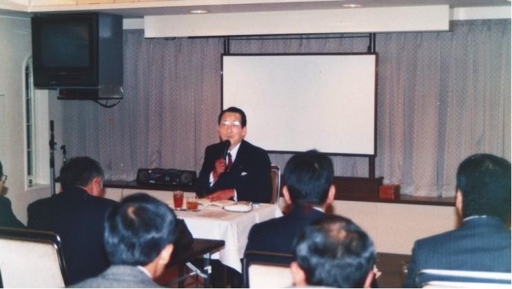 一开始只是面向20~30人的经营管理课(下图),但在一年一度的盛和塾大会上约有3000位经营者蜂拥而至,用心聆听演讲(上图)。