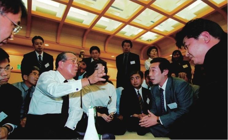 盛和塾例会后,与塾生把酒言欢,推心置腹地交流。