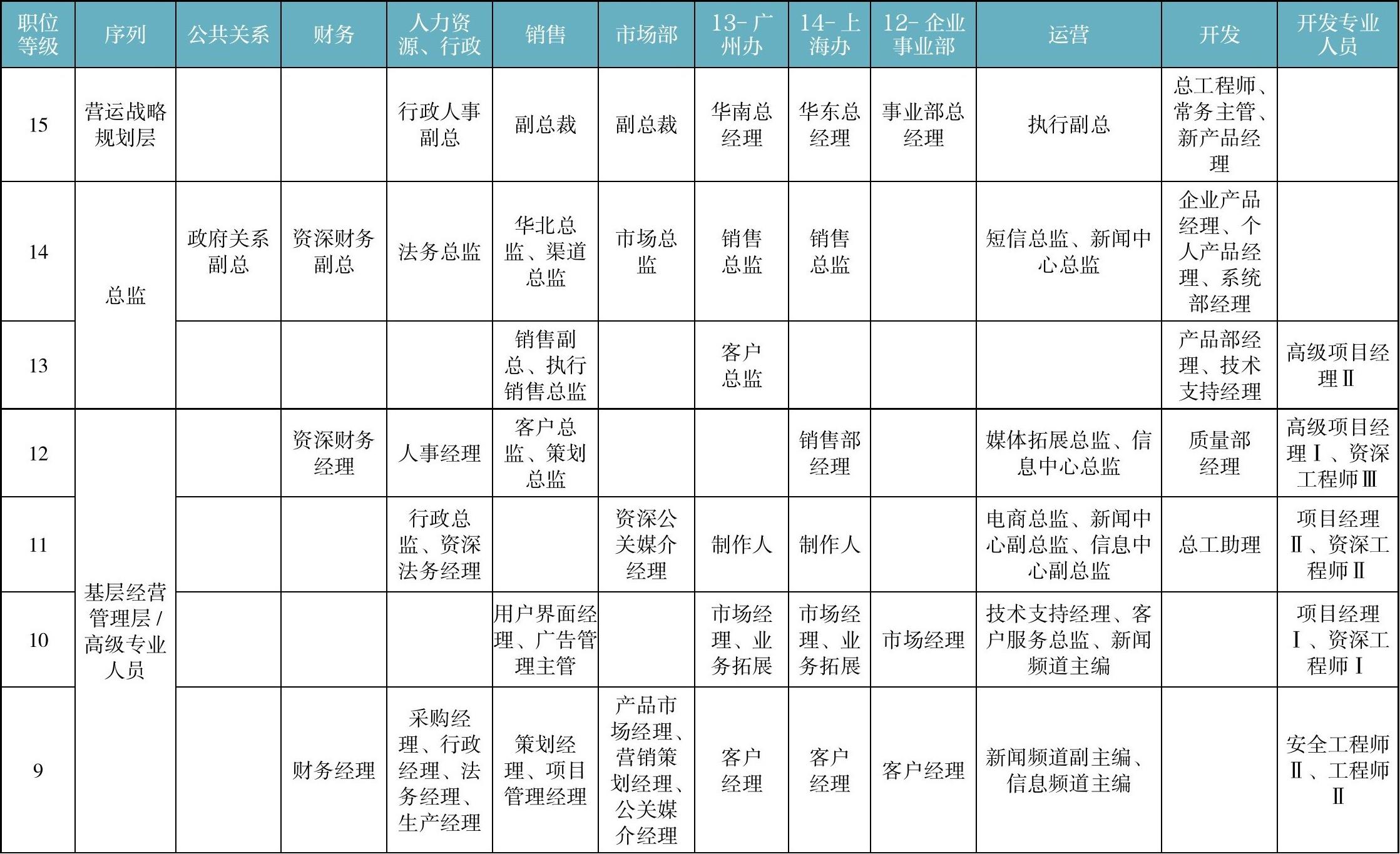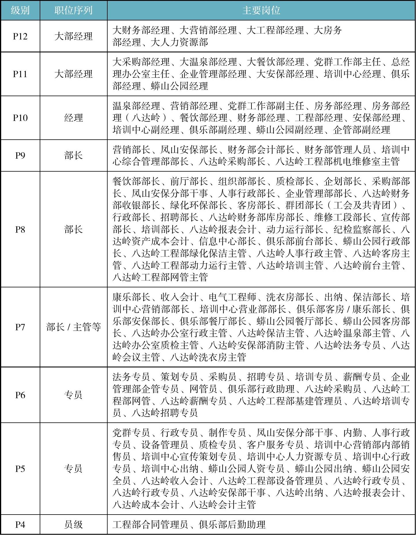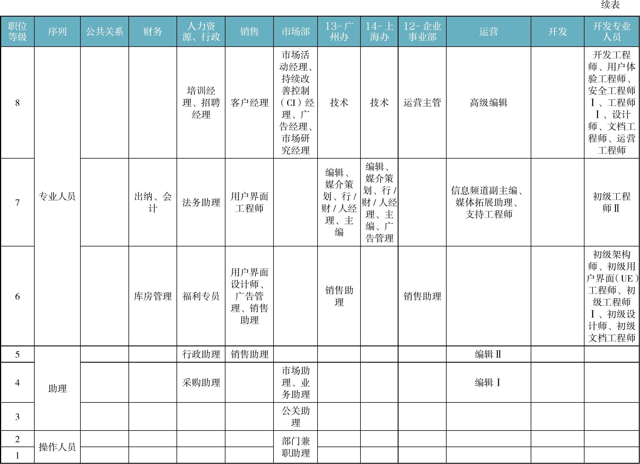 表2-4 职级表