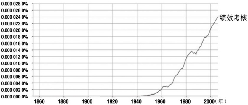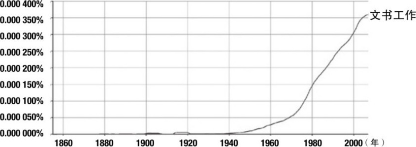 此图反映的不是耗在文书工作上的时间,而只是“paperwork”(文书工作)一词在英文著作中的出现频率。但由于没有时间机器可供开展更直观的调研,这是我们能得出的最近似的结果了。