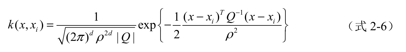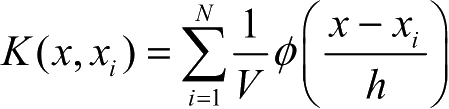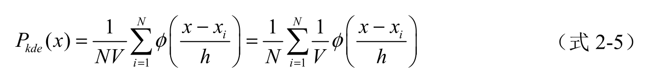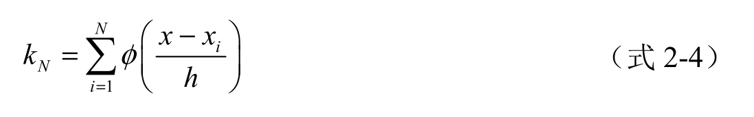 将其代入公式2-2,可得到任一点 x 的概率密度估计: