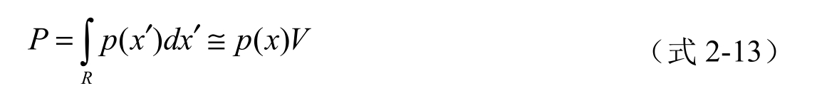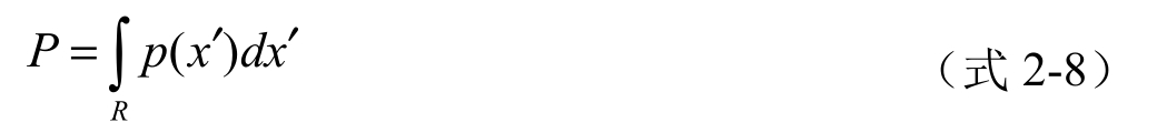 假设 p ( x ′)是 x ′的密度函数,向量 x 落在区域 R 的概率为: