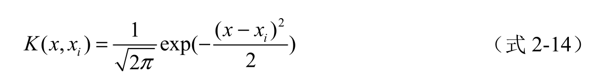 如前所述,将核函数 K ( x , x i )设为标准正态分布,即: