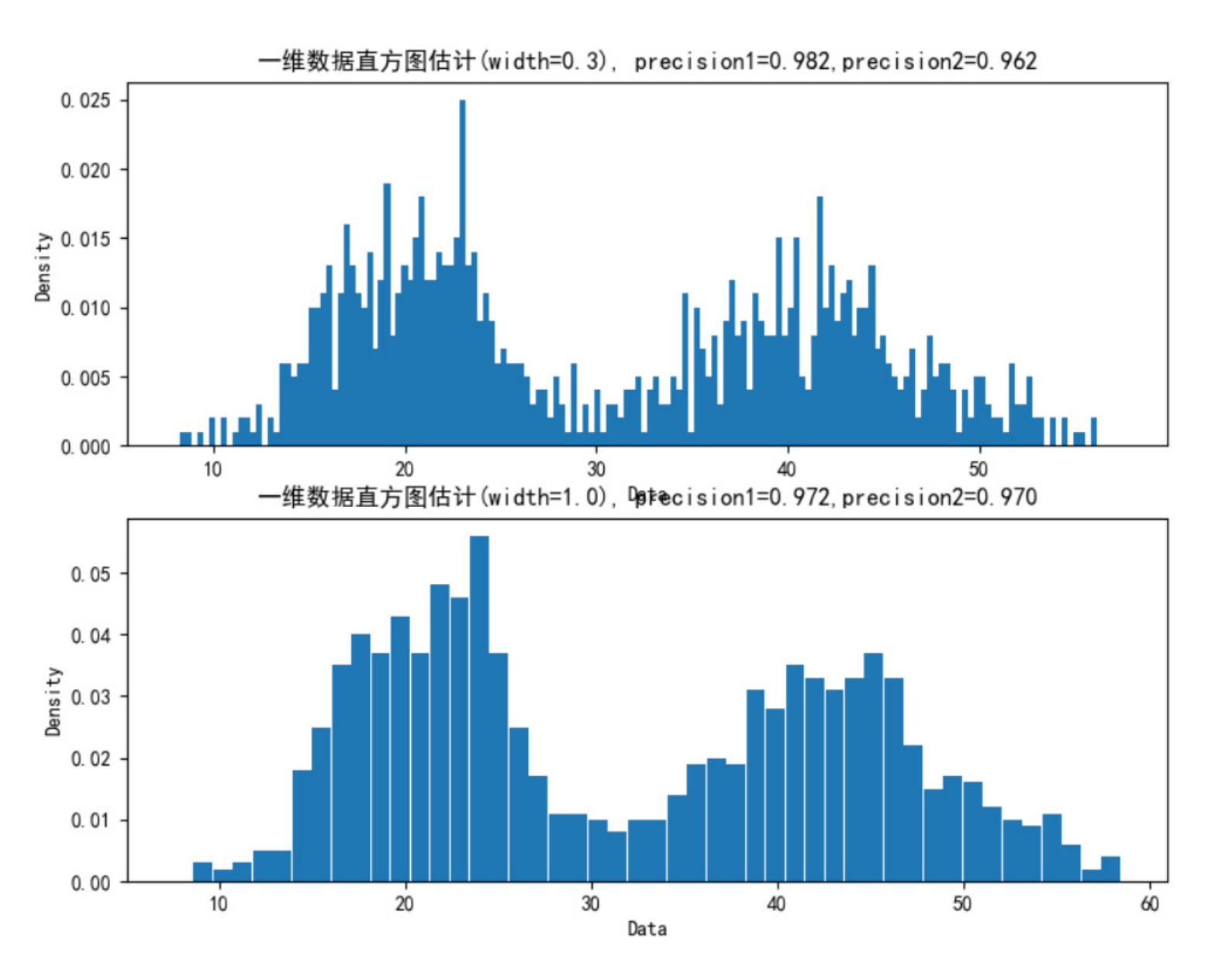 图2-4 窗口为0.3和1.0时的直方图概率密度