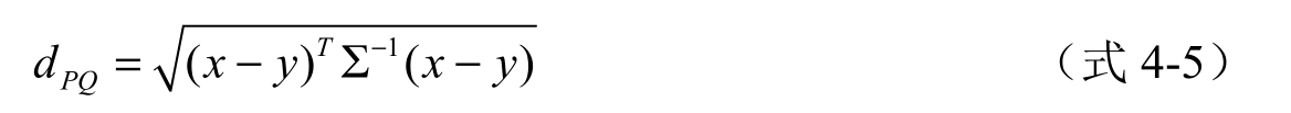 数据点 P 和 Q 之间的马氏距离定义为:
