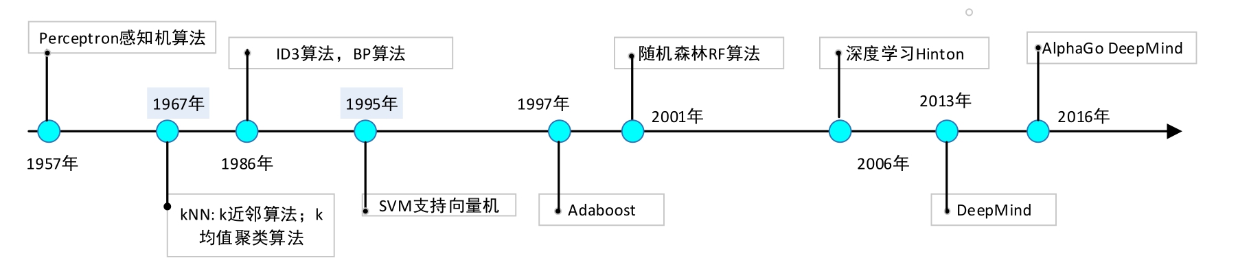 图1-5 机器学习在各个发展阶段具有代表性的算法