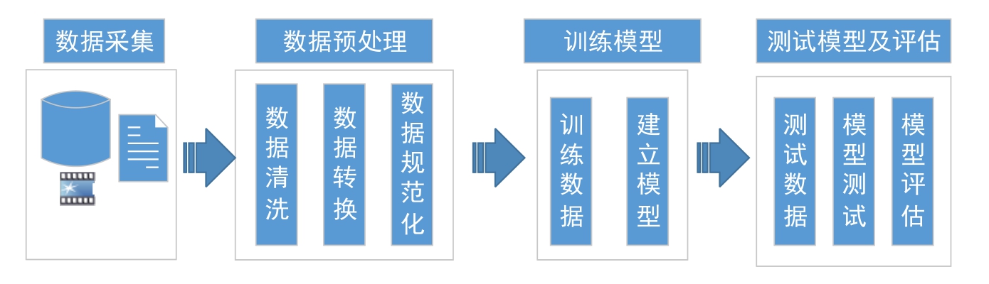 即使对于大众认可度比较高的代表性数据集,也会或多或少存在数据缺失、分布不均衡、存在异常数据等诸多数据不规范的问题。这就需要对收集到的数据进行预处理,包括数据的清洗、数据的转换、数据标准化、缺失值的处理、特征的提取、数据的降维等。这一系列的工程化活动,也被称为“特征工程”,这些活动都属于数据预处理。例如,如果要对邮件进行分类,即区分正常邮件还是垃圾邮件,需要先对邮件文本进行分词、去除停用词、特征权值计算、模型训练、模型测试和评估等阶段。