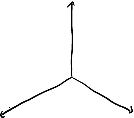 如果你问“哪两个方向是可以派生出其他所有方向的基本方向?”,那么我会告诉你这个问题毫无意义,因为任意选择两个方向都能达到同样的效果。你可以选择北和东,你也可以选择南和西,你还可以选择西北和东北偏北,诸如此类。唯一需要注意的是,你不能选择两个相同或正好相反的方向,否则你就只能在地图上画出一条直线。你可以试试看。