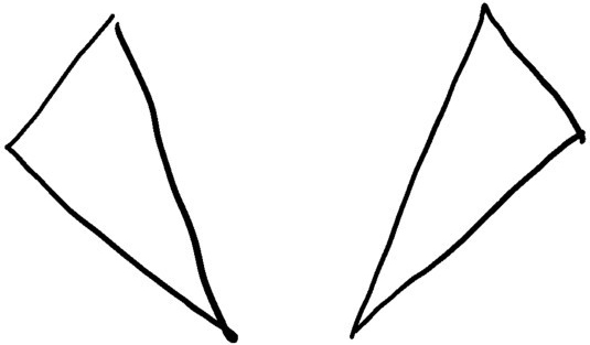 图3-1中的两个三角形全等,所以我们倾向于像欧几里得那样宣称它们是相同的,尽管它们实际上并不相同。它们是间距约为3英寸的两个不同的三角形。
