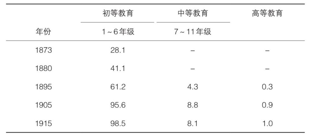表2.4 1873—1915年日本在校儿童占比(单位:%)