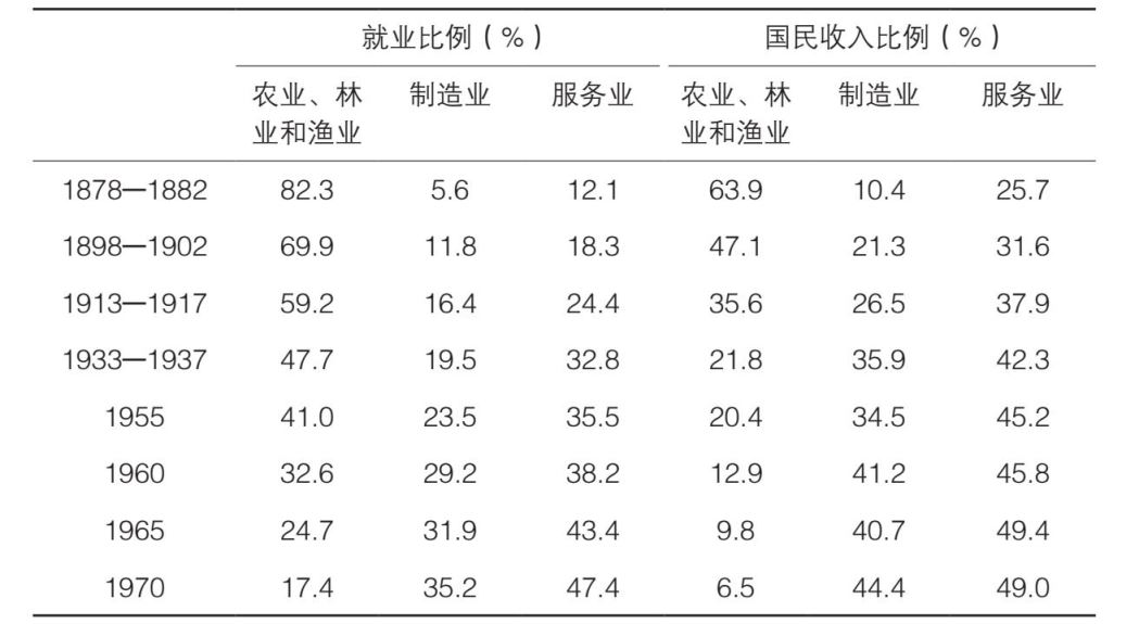 在经济发展过程中,一个经济体的产业结构通常会经历重大转变。生产和就业从农业转向制造业,然后从制造业转向服务业。即使在制造业内部也会发生类似的变化,一个经济体在工业化的早期阶段往往集中于纺织等轻工业,然后逐渐转向钢铁和化工制品等重工业。日本也不例外。