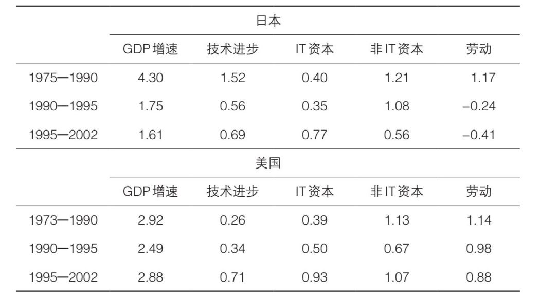 20世纪90年代,日本供给侧增长放缓的一个重要原因是缺少对IT(信息技术)资本品的投资。这与美国经济形成了鲜明对比。美国的IT革命引致了20世纪90年代的经济复苏。