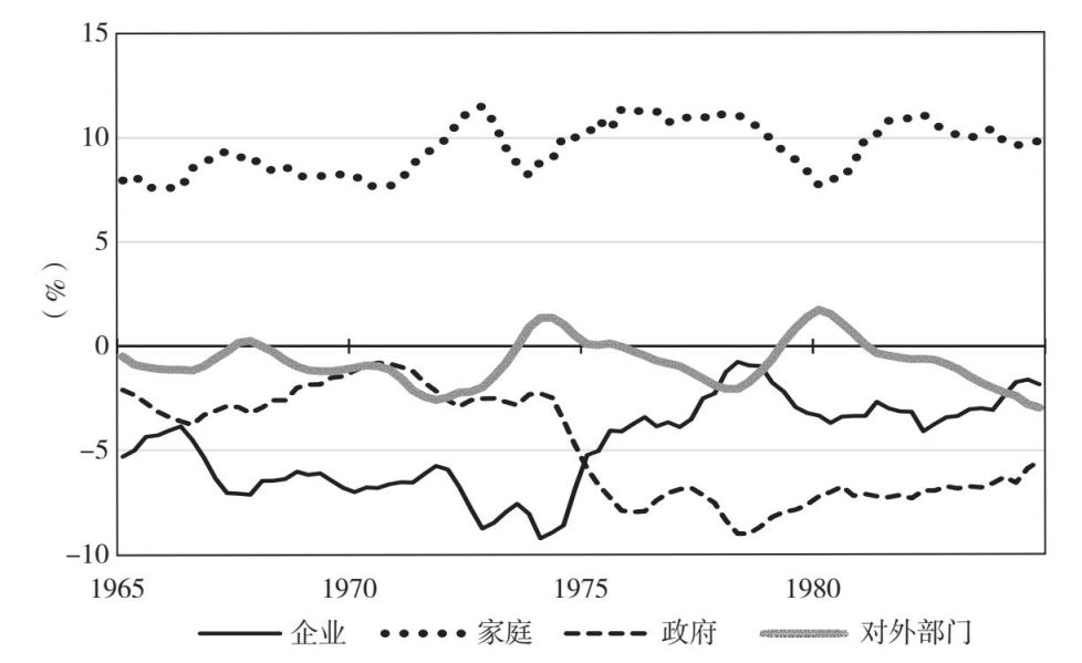 当企业部门的赤字缩小时,政府部门的财政赤字却在增加,20世纪70年代中期之后,它已经是赤字规模最大的部门。同样,我们可以找到政府在20世纪70年代中期财政赤字增加的两个原因。增长放缓意味着税收增加也更缓慢。与此同时,政府为了实施财政刺激政策和促进社会福利,也开始增加支出。1974年是1950年以来出现负增长的第一个年份,政府决定推翻平衡预算法(《公共财政法案》第4条),在1975年的预算中发行政府债券以为赤字融资。