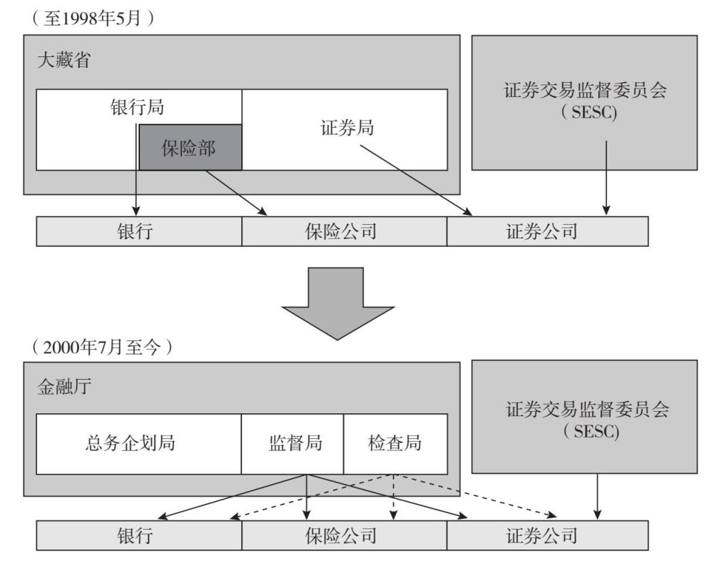 资料来源:1998年6月至2000年6月,金融厅作为综合性的监管机构对金融机构实施监管。在这一时期,大藏省拥有规划职能。
