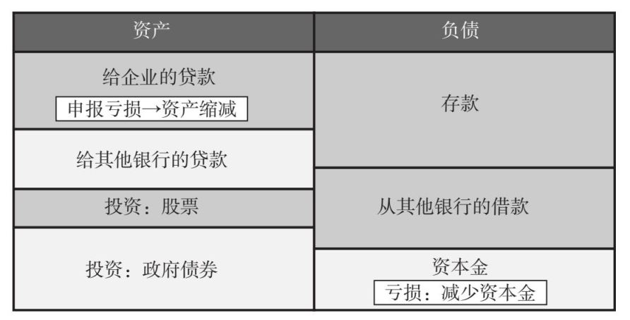当借款人未能按照合同规定还款时(通常是利息加上一部分本金),银行贷款就会变成不良贷款。当不良贷款增加时,银行预计不良贷款不可收回部分会形成未来的损失,并在财务上增加贷款损失准备金。这些贷款损失准备金代表了由不良贷款造成的损失金额,银行预计最终要将它核销。然而,并不是所有的不良贷款都会损失,因此贷款损失准备金的数量小于不良贷款的总金额。一些借款人可能会重获新生,从而银行能够收回欠款,即使金额略有减少。甚至当借款人破产时,银行也可以收回抵押品并将其出售。