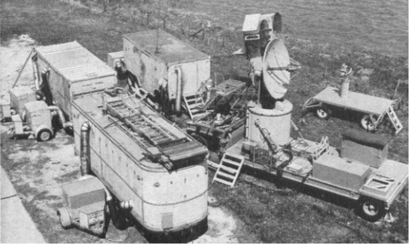目标特性测量主要有外场试验和暗室辐射式仿真测量两种方式,其中外场试验通常采用实体目标进行探测分析。1965年,美国海军研究实验室(Naval Research Laboratory,NRL)采用外场试验的方法对目标动态特性进行了测量,该测量系统采用脉冲雷达信号体制,能够实现L、S、X波段的目标特性测量,测试效果良好。文献[63]给出了NRL的动态测量雷达系统,如图1.29所示。