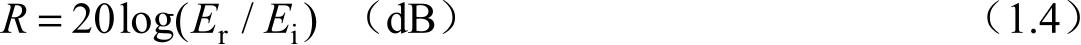 应用几何光学射线追踪法来解算微波暗室的静区问题,还必须假定黏贴吸波材料的微波暗室内壁对于入射的电磁波来说呈现镜面反射特性,即电磁波入射到吸波材料上之后,一部分能量被吸波材料吸收,另一部分能量沿着几何光学的镜面反射方向进行传播。假定入射场为 E i ,反射场为 E r ,则吸波材料的反射系数为