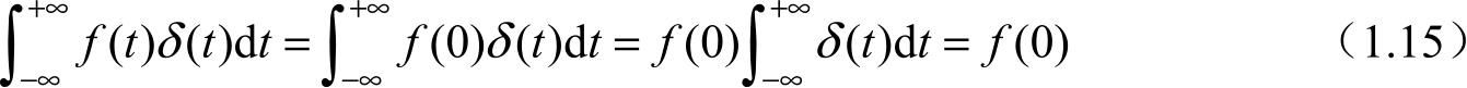 对于任意函数 f ( t ),其与 δ ( t )乘积的无限积分等于 f (0):