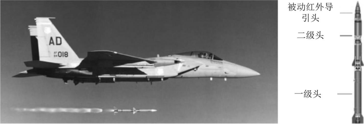 导弹助推段的拦截系统由于要考虑到导弹拦截反应时间短、导弹发射地点距离远等问题,因此拦截系统通常以机载为主,从而实现灵活的机动能力。导弹助推段主动防御系统如图1.23所示。
