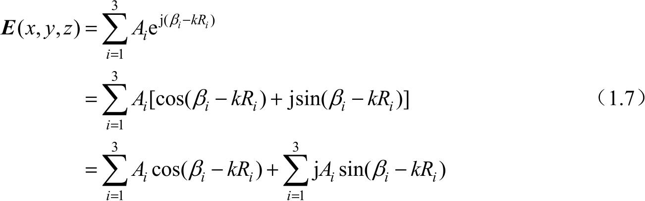 各矢量在空间方向上的差异,因此,可以简化为复标量叠加。式(1.6)中,
