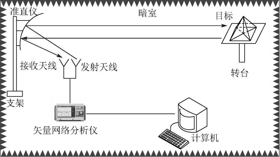 传统目标特性测量常用点频方法,即用单一频率的连续波模拟均匀平面波照射目标,并通过回波进行散射特性测量。随着微波测试技术与仪器的进步,宽频段扫频测量被广泛采用。扫频方式是在一定的带宽范围内,产生频率由低到高或由高到低连续变化的信号进行测量。通过将目标置于转台上,利用转台旋转对每个方位角进行宽带扫频测量,得到目标的散射信息。这种方法本质上是采用静态测量的方法,其缺点是不能反映目标的运动特性,难以逼真复现实际场景中目标散射特性的动态信息。