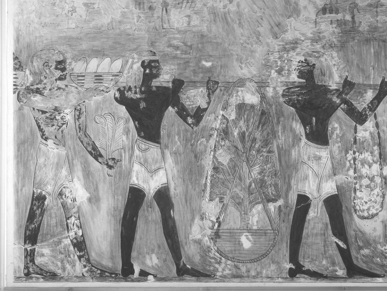 埃及也与南方的非洲部落人民进行贸易,以他们所产的油、蜂蜜、衣服和彩陶,换取象牙、紫水晶和豹皮。南方的部落受到埃及的控制,不只与埃及远征军进行以物易物的交易,还纳贡给埃及。一个公元前两千纪中叶的埃及壁画中就出现努比亚人进贡的画面,努比亚人带着野猪的獠牙、豹皮、金戒指,还有一只猴子骑在长颈鹿的背上。
