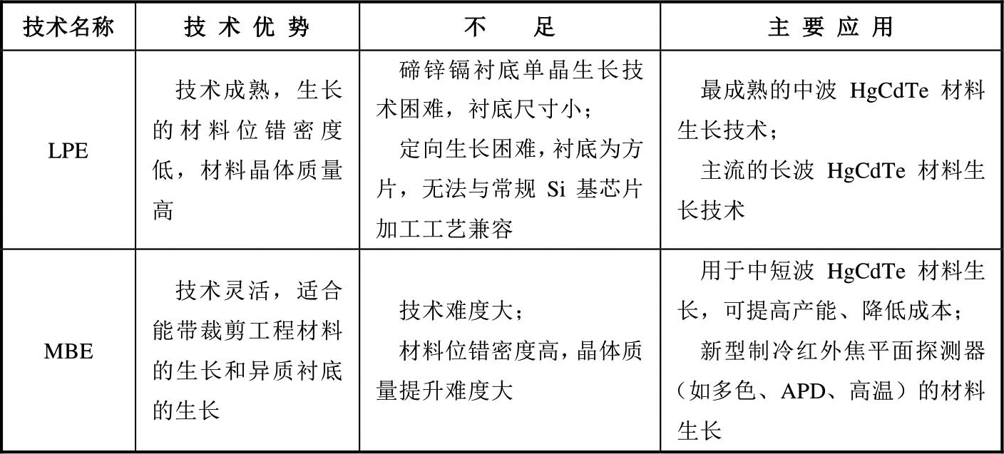 表2-2 HgCdTe材料生长的LPE与MBE技术对比