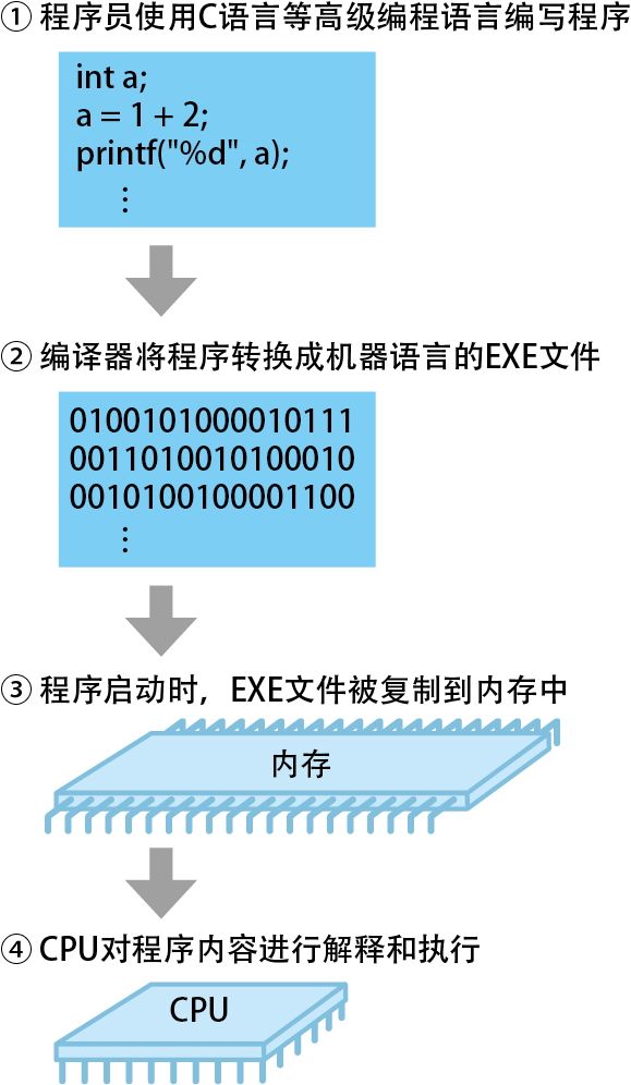 所示的流程。这张图是了解程序运行原理所必备的基础知识。详细内容笔者接下来会进行讲解,这里希望大家先有一个大概的印象。