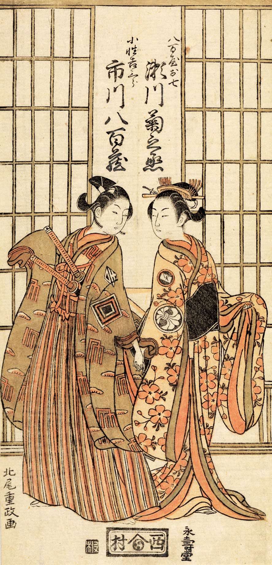 北尾重政 赖川菊之丞的八百屋阿七和市川八百藏饰演的小姓吉三良 红摺绘