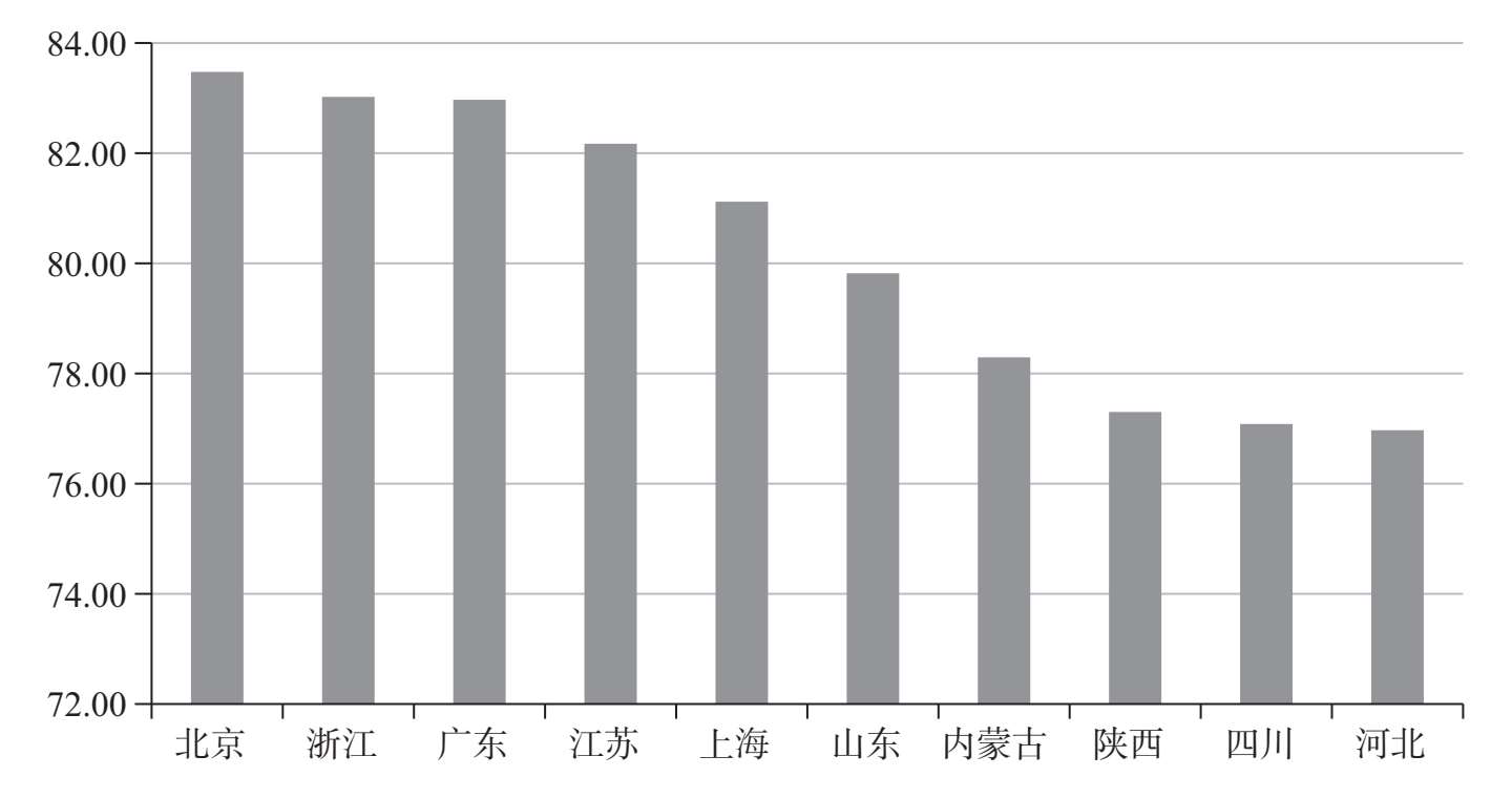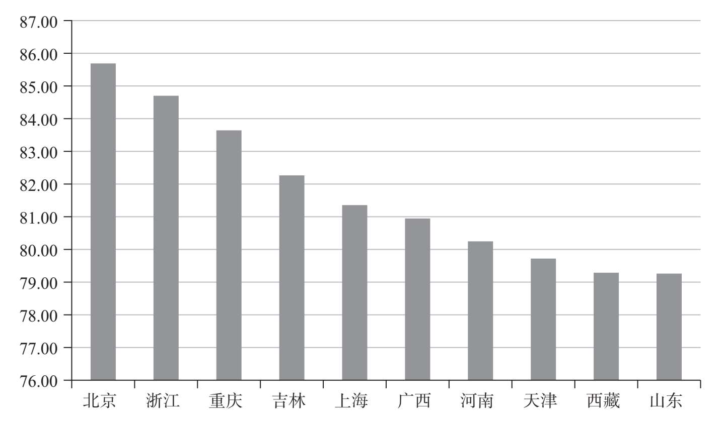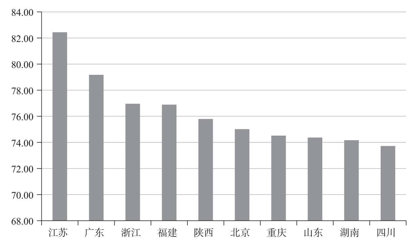 图2-4 2019年中国省市文化产业综合指数前十名