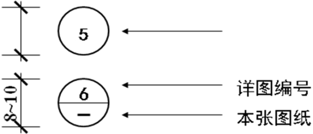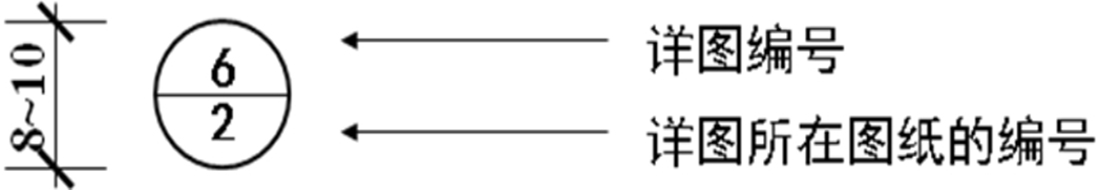 详图不在本张图纸上时,表示为如图2-9所示的标注样式。
