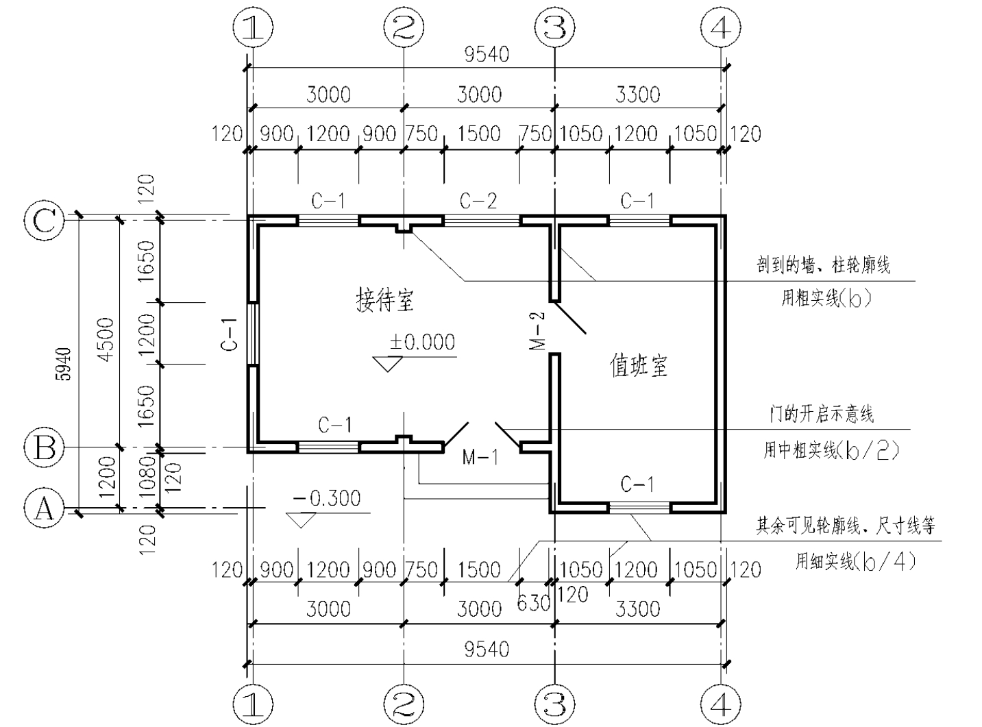 图线分为粗线、中粗线、细线三类。画图时,根据图形的大小和复杂程度,图线宽度